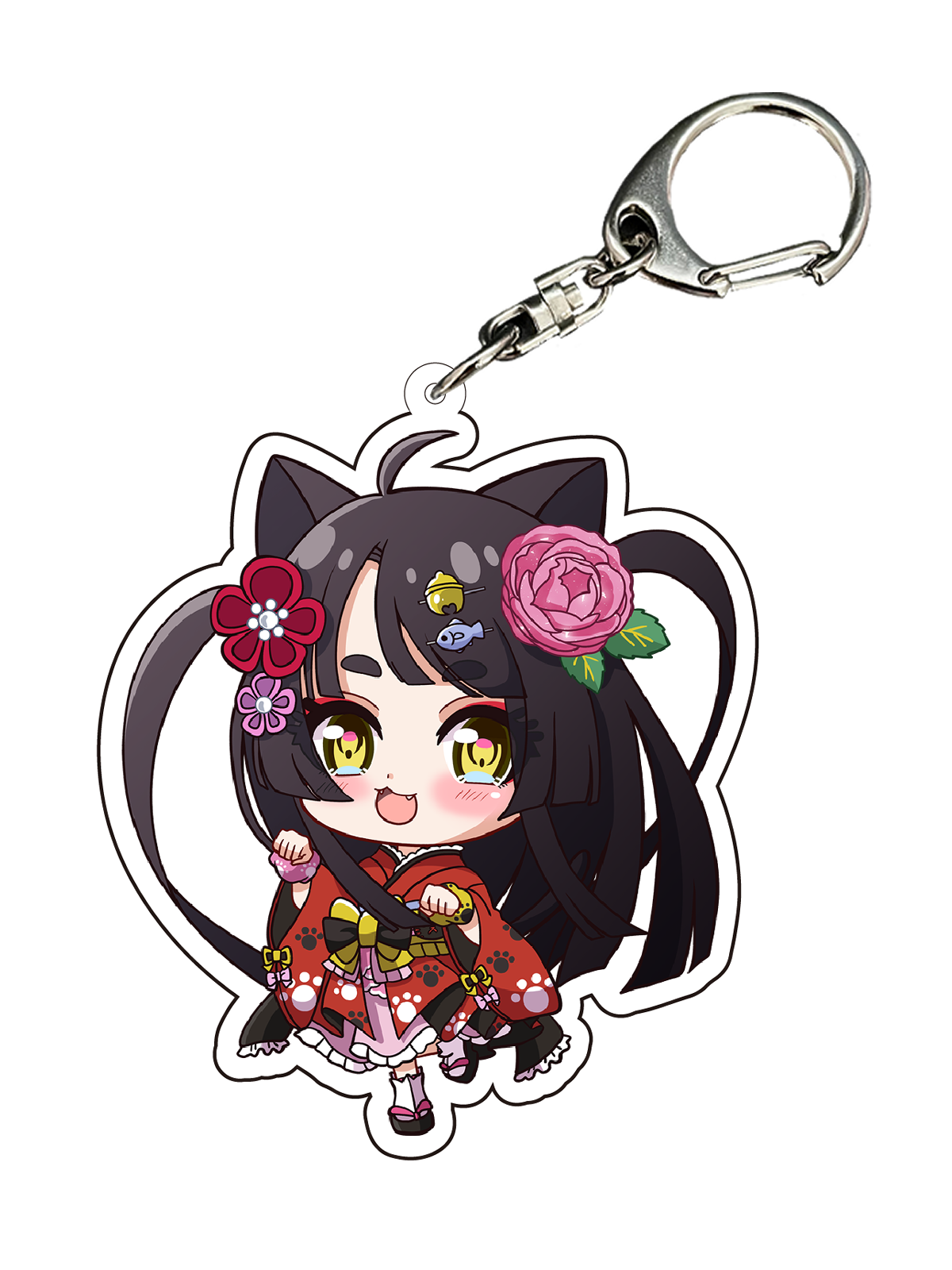 招き猫(黒猫)の女の子、つばきちゃんのSDキャラクターのアクリルキーホルダーです。