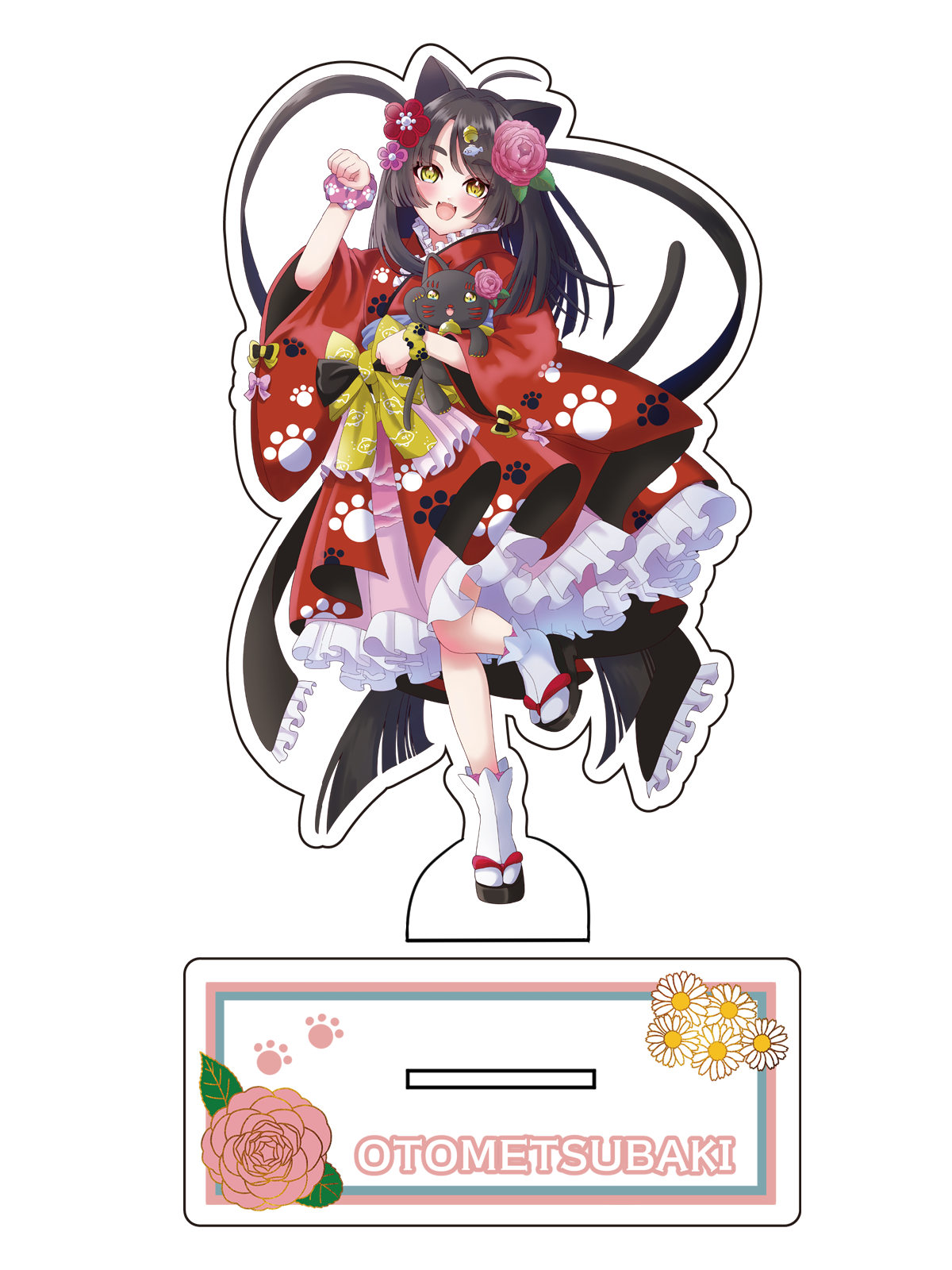 招き猫(黒猫)の女の子、つばきちゃんの通常等身のアクリルフィギュアです。